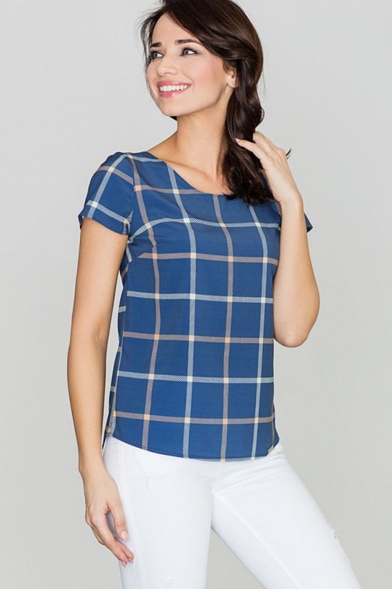 Luźna bluzka z krótkim rękawem w retro kratę. Świetnie pasuje do spodni jak i spódniczek.