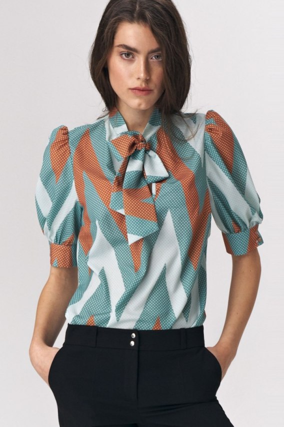 Turkusowa bluzka z wiązaniem na dekolcie w zygzak B111 Turkus - Nife